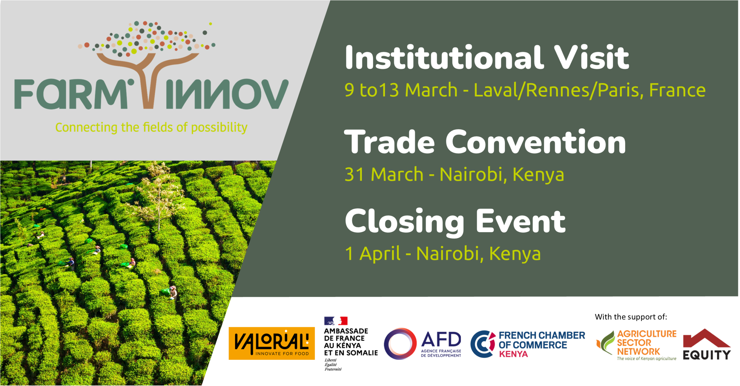 Two other events are currently being prepared, this time in Nairobi: a Trade Convention on 31 March, between the 14 Kenyan companies involved in the project’s acceleration programme and the main local distributors, to develop the distribution of their products in particular, as well as the project’s Closing Event on 1 April, which will be more institutional in nature, taking the form of an initial assessment and outlook, and will bring together all the project’s stakeholders, companies and institutional partners of the project in Kenya, as well as the community built around Farm’Innov over the last two years (French Embassy, AFD, ASNET, Equity, French Chamber of Commerce, Ministries, accelerated companies, French and Kenyan agri-food companies, etc.).